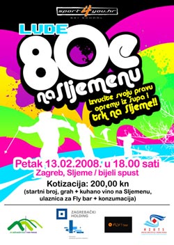 "Lude 80e" na SljemenuUkoliko se želite podsjetiti kako ste skijali tijekom 80ih godina prošlog stoljeća dođite na Sljeme.U petak, 13. veljače. će se na Sljemenu, po prvi puta, održati jedinstvena utrka "Lude 80e".